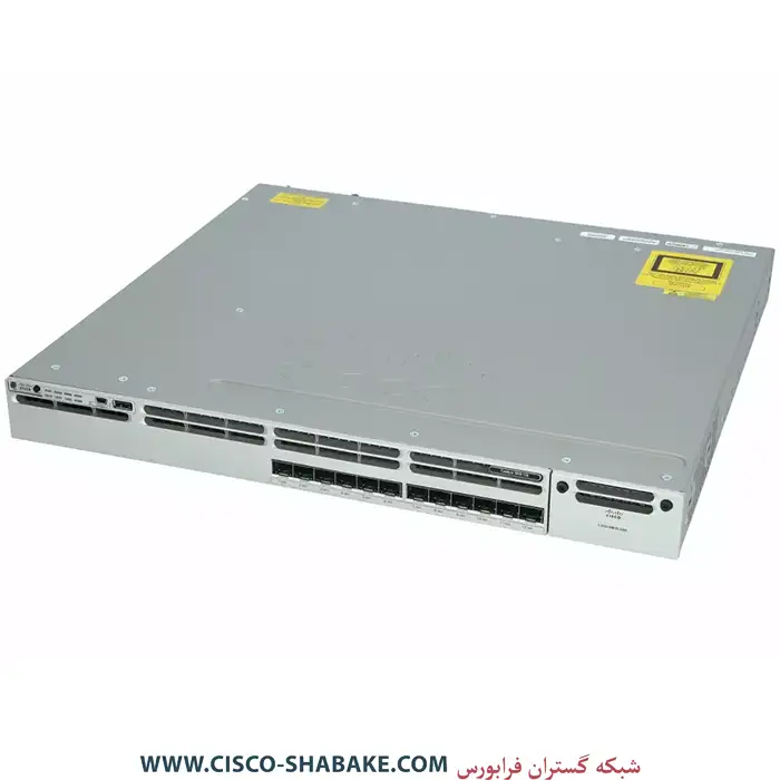 مدل WS-C3850-12XS-E بهطور خاص برای محیطهایی طراحی شده که بهجای پورتهای مسی، نیاز به اتصالهای فیبری پرسرعت دارن. این سوئیچ سیسکو دارای ۱۲ پورت +SFP هست که هرکدوم میتونن با ماژول مناسب، لینکهای ۱۰ گیگابیت بر ثانیه رو برقرار کنن. این دستگاه با بهرهگیری از لایسنس IP Services، نهتنها سوئیچینگ لایه ۲ بلکه روتینگ کامل لایه ۳ رو هم در اختیار مدیر شبکه قرار میده.